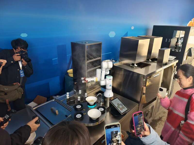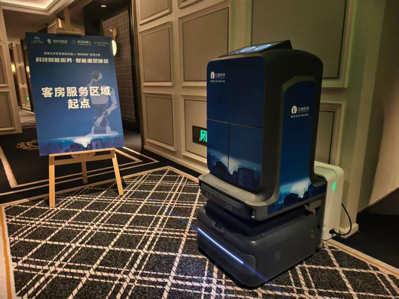 从迎宾导览到客房打扫,从常温咖啡到热腾腾的番茄炒蛋,机器人在北京亦庄的一家酒店内“施展拳脚”。记者在酒店6层的客房走廊看到,一台机器人等候在客房外,当识别到客房门打开,机器人储物间的门也随即打开。操作人员向评委介绍,参赛的云迹科技机器人与市面上的酒店送货机器人不同,这台参赛机器人下有可以自动扫地的底座,上可以叠加多个置物舱,同时完成多个指令。